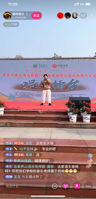 14号乐队组合为我们带来的歌曲是《向阳花》,他们说希望桑植县的人们可以像向阳花一样绚烂绽放,殊不知他们六个站在台上歌唱的样子就是向阳花。20岁年纪的孩子像向阳花一样追逐自己的梦想,站在闪闪发光的舞台上,给自己最熟悉的土地歌唱。